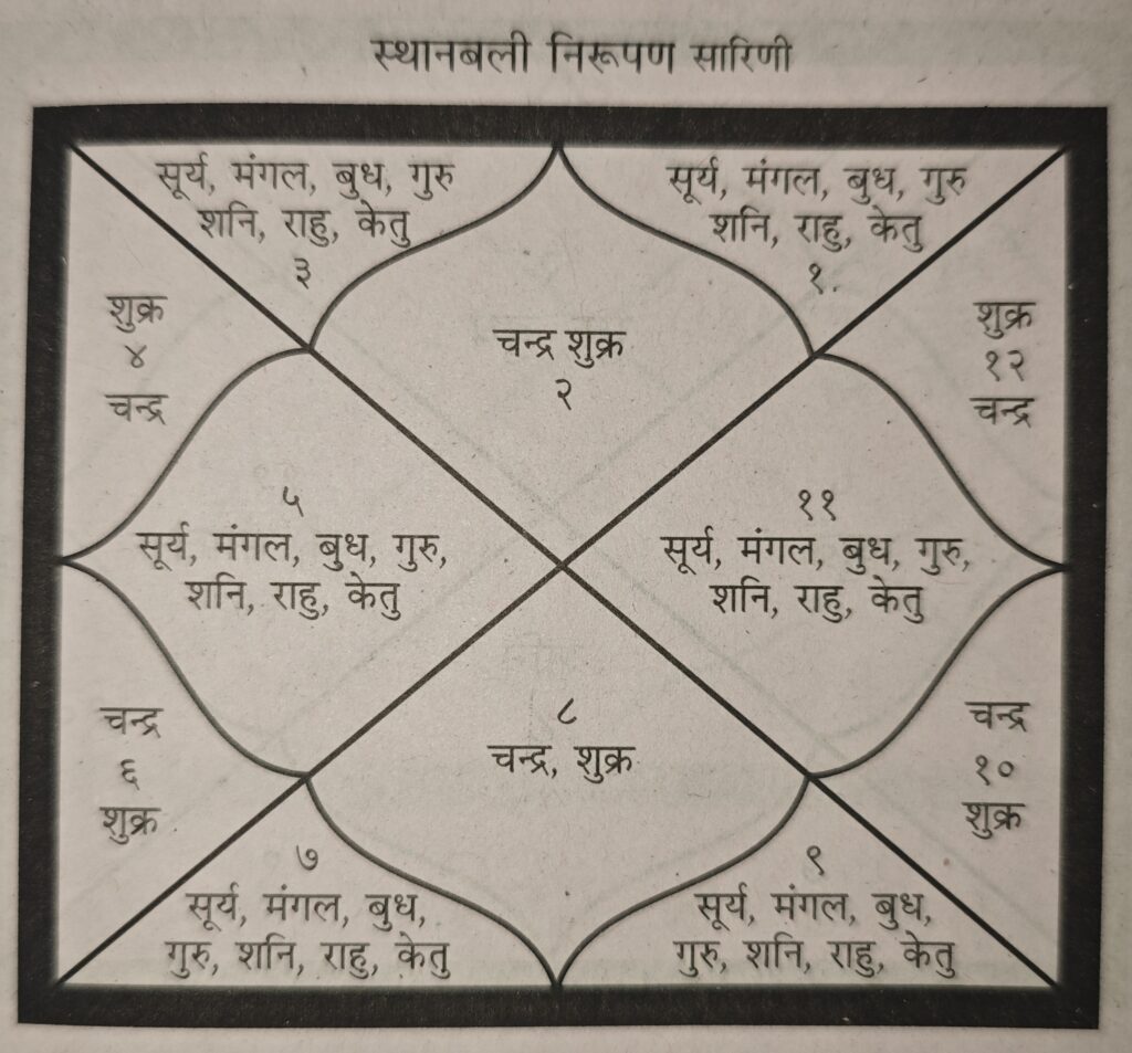 (1) स्थान बल – जो ग्रह उच्च, स्वग्रही, मित्रगृही अथवा मूल त्रिकोण में स्थित होता है, उसे ‘स्थान बली’ कहा जाता है।